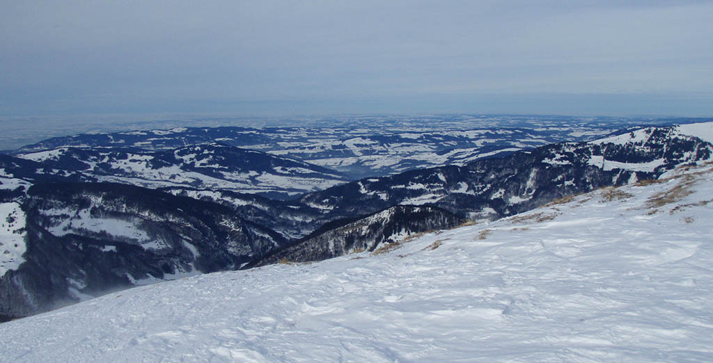 Nach der späten Mittagspause in der Elsenstube ging es wieder zurück nach Mellau. Hier die Aussicht vom Wannenkopf ins Flachland. Ich glaube die Sichtweite war nur durch die Erdkrümmung eingeschränkt.