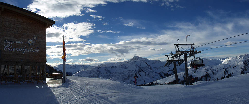 Die Kassiererin warnte mich, dass auf Grund des Winds die Gipfelbahn (Verbindungsbahn nach Damüls) evt. nicht läuft. Nach kurzem überlegen habe ich trotzdem die Tageskarte für 40€ gekauft, im Notfall hätte ich später mit dem Auto rüberfahren können.