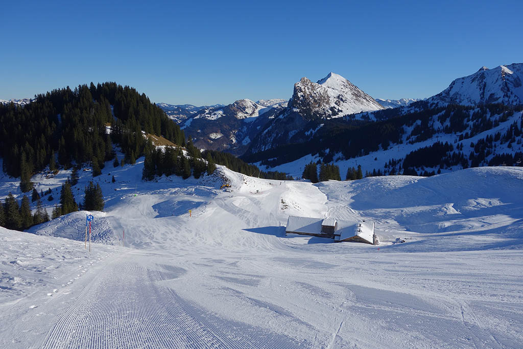 Und dieses Pistenstück an der Zweier-Sesselbahn Oberdamüls war das beste des Tages. K.A. warum dort der Schnee so gut war.