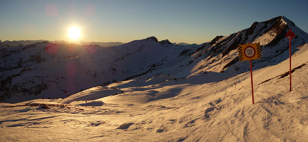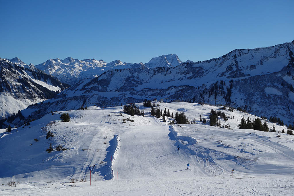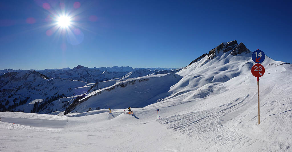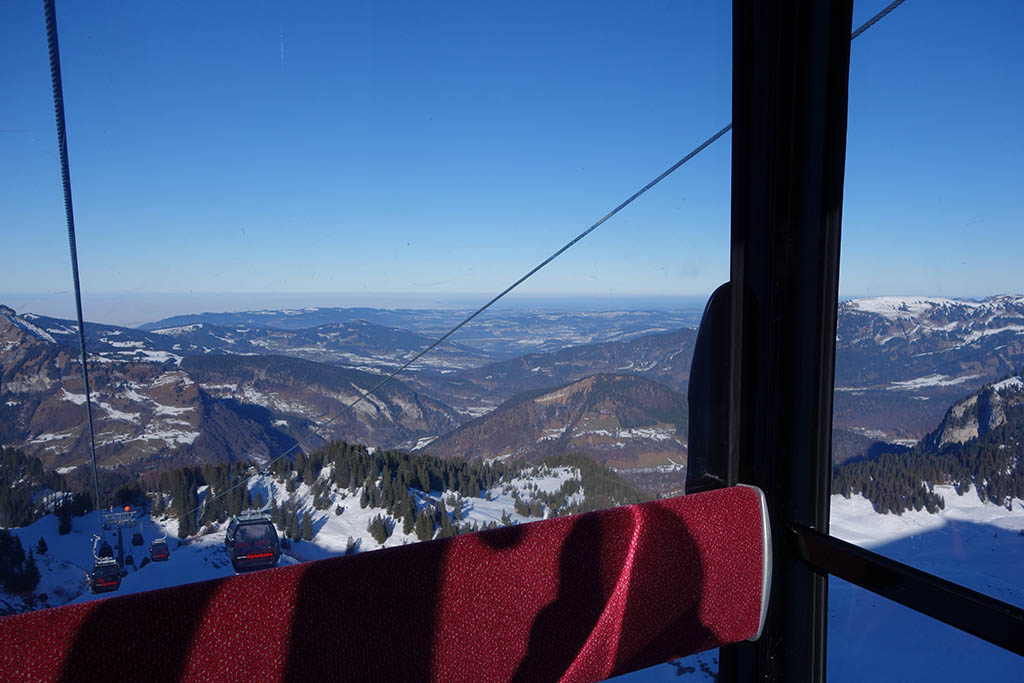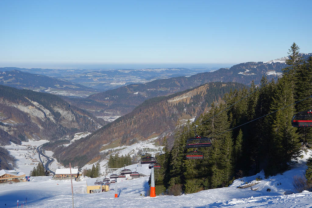 Danach wieder zu den besseren und sonnigeren Pisten nach Damüls. Die Aussicht aus der Gipfelbahn ist einfach toll. 😃
