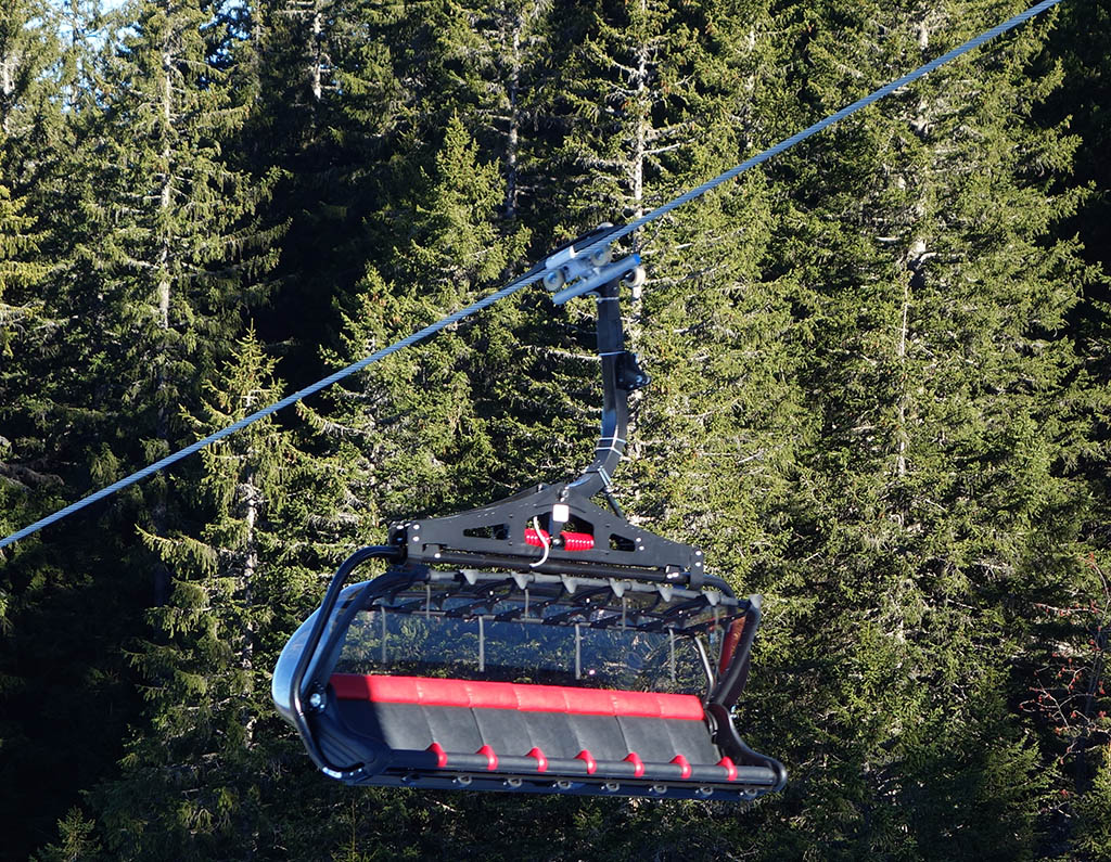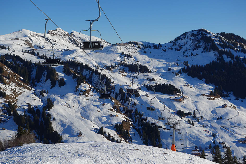 Noch zwei Bilder der Achter-Sesselbahn. Übrigens zum Glück ohne automatische Bügel. Und sie fährt ziemlich langsam, so dass einem die kurze Strecke gar nicht so kurz vorkommt.