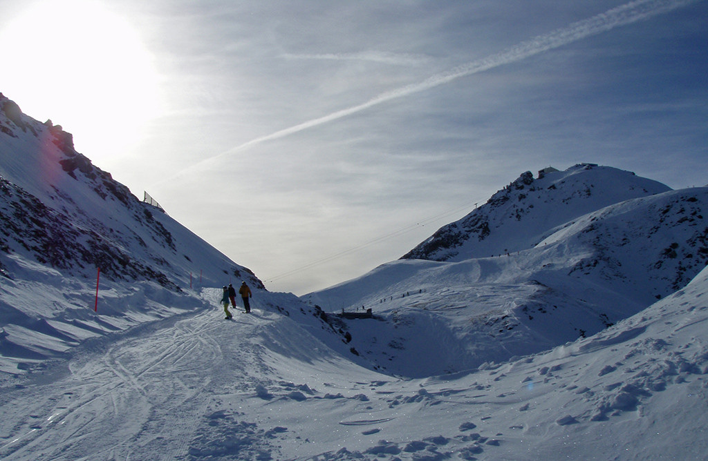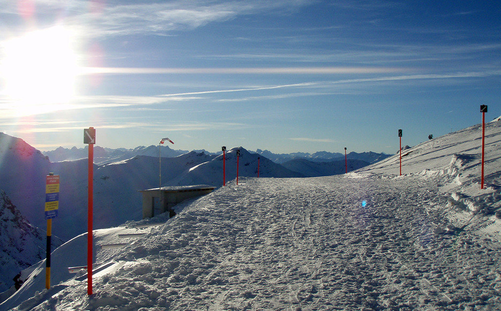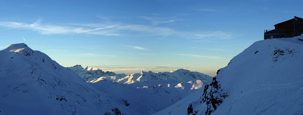 Oben auf dem Weisshorn wurde das alte Restaurant komplett abgetragen. Das hat den Vorteil, dass man jetzt zur schwarzen Piste direkt eben kommt, ohne mit der Rolltreppe fahren zu müssen.