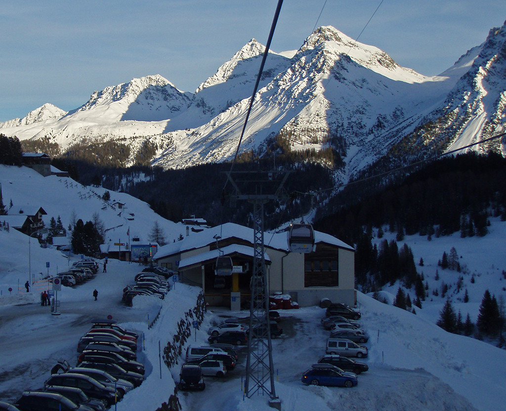 Mein erster Skiausflug zwischen Weihnachten und Neujahr ging nach Arosa. Ankunft nach 2h Fahrt auf schon recht belebter Autobahn um 8:45 an der Hörnli-Bahn auf 1800m. Tageskarte 61CHF + 8CHF Parkgebühren.