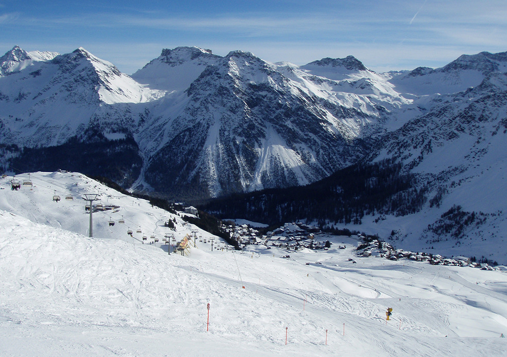 Blick von oben ins Urden-Tal, worüber die Verbindungsbahn nach Lenzerheide führen wird (weiter links).