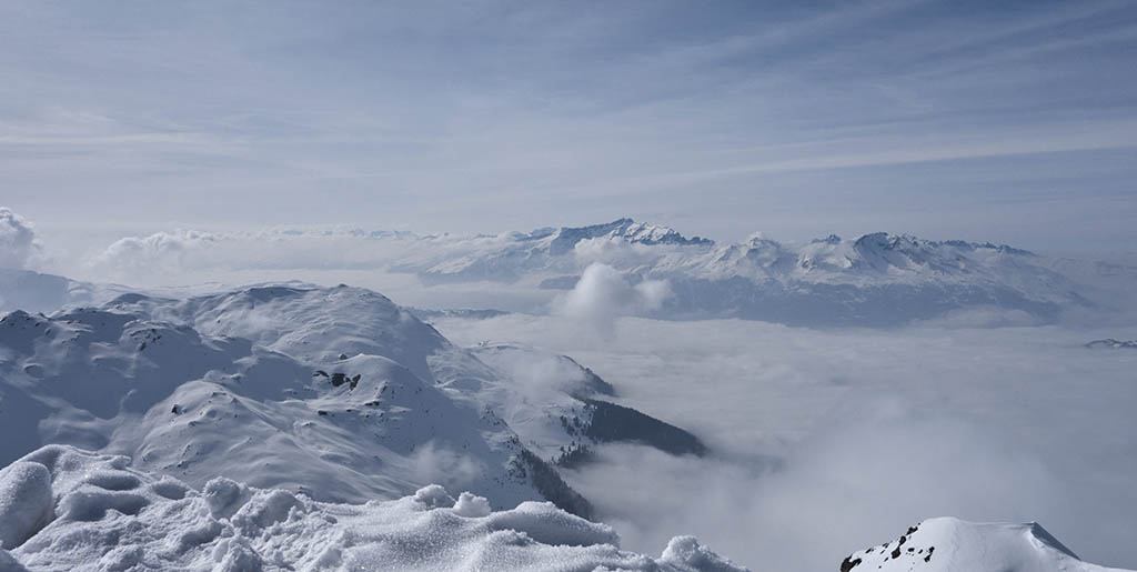 Blick von der Bergstation zum Weisshorngipfel. Den ganzen Tag sehr schöne Wolken und Nebelszenen. Ich denke Arosa war eines der wenigen Gebiete in der Gegend, wo an dem Tag schönes Wetter war. Ansonsten lag die Nebelobergrenze über 2000m.