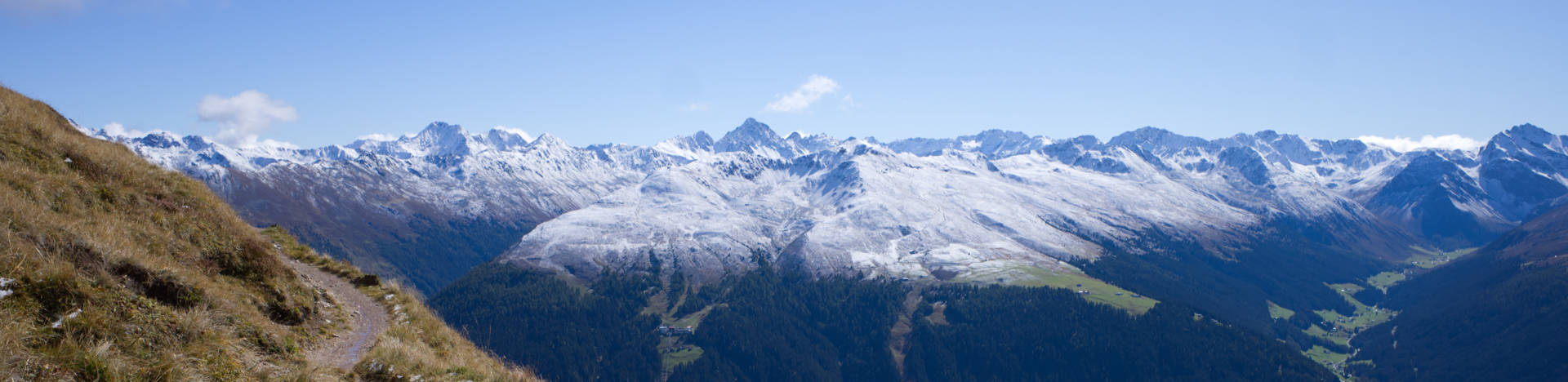 Nach einer ersten richtigen Pause im Gras (davor war auf Grund des Schnees keine richtige Sitzgelegenheit), ging ich nun den schönen Panoramaweg oberhalb von Davos entlang. Dieser ist auch bei Mountainbikern beliebt und hat praktisch keine Steigungen.