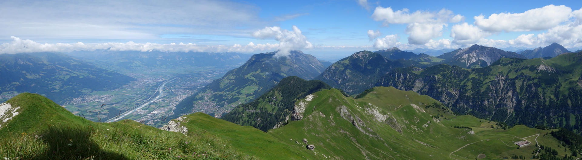 Und dann über Treppenstufen den steilen Grashang hinauf auf den Kolme. Der Blick ins Rheintal war zwar schön, aber auch ziemlich tief und steil.