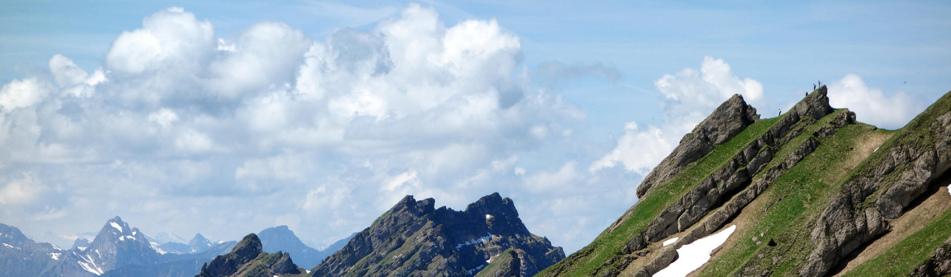 Die Landschaft auf der Südseite des Speers ist super. Hier zu sehen der verlängerte Grat des Speers, auf dem auch ein Wanderweg entlang führt.