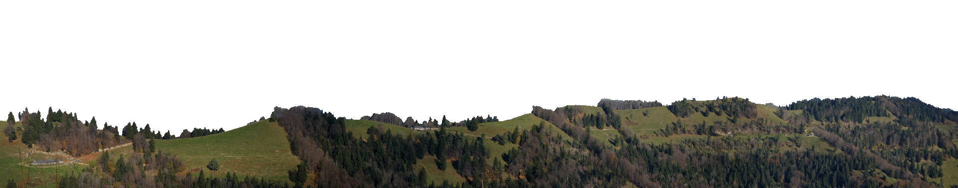 Blick vom Chrüzegg auf den weiteren Verlauf des Wegs. Das Gasthaus Chrüzegg versteckte sich noch hinter den Tannen in der Bildmitte.