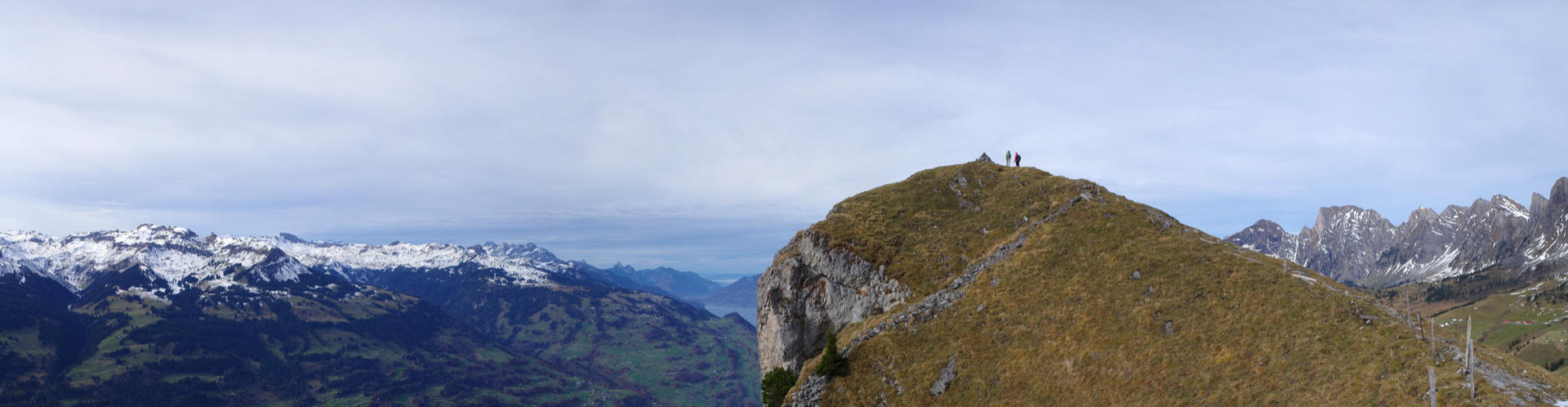 Die tolle Aussicht auf dem Gonzen konnte ich ganz alleine genießen. Es wehte hier allerdings stürmisch der Föhn, so dass ich dann doch die Jacke anziehen musste.