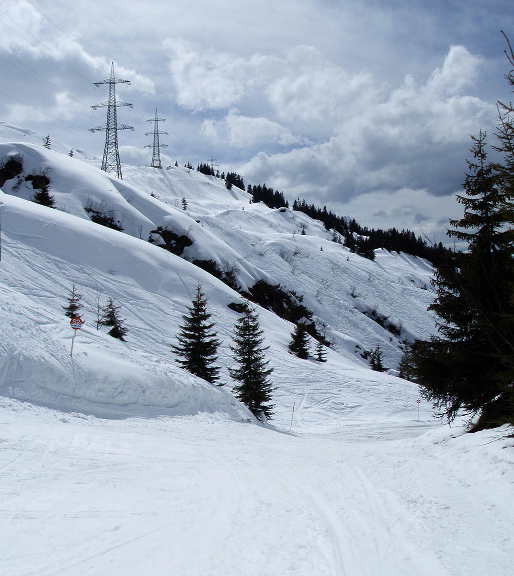 Erst Abfahrt an der Sechser-Sesselbahn Valfagehr. Wohl in der Nacht 10cm Neuschnee (leicht) verweht und die meisten Pisten nicht präpariert. Ergebnis: Tiefschnee-Feeling auf der Piste.
