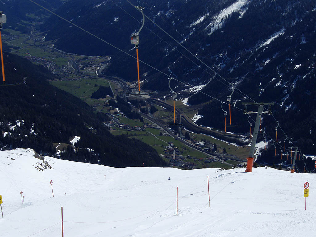 Auf dem Kapall. Blick ins grüne Tal. Die vielen Tagesgäste schafften es nicht, die Lifte auch nur annährend auszulasten.