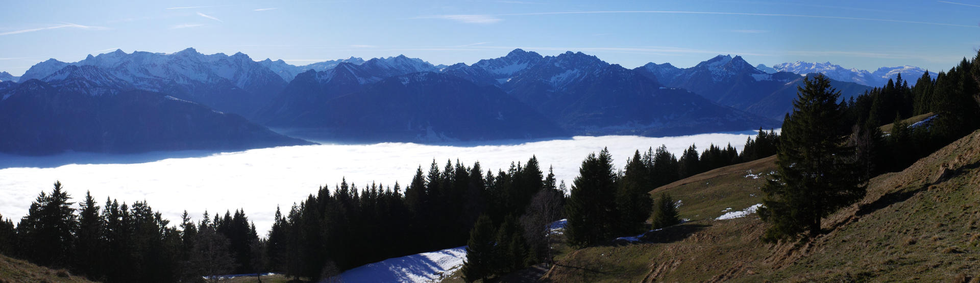 Schon bei der Auffahrt und vom Parkplatz aus gab es eine schöne Aussicht über das Nebelmeer, das im Walgau und Rheintal lag.